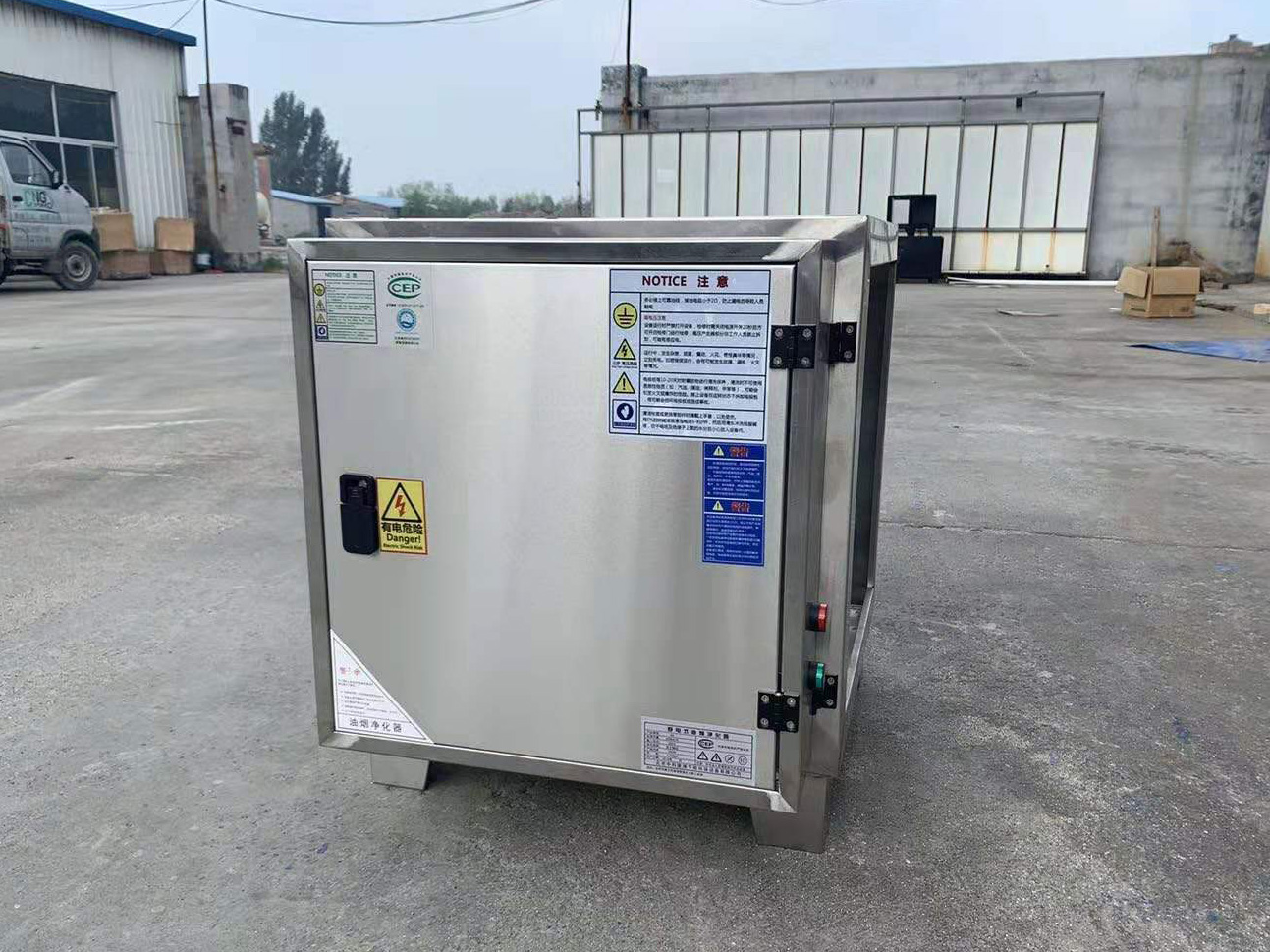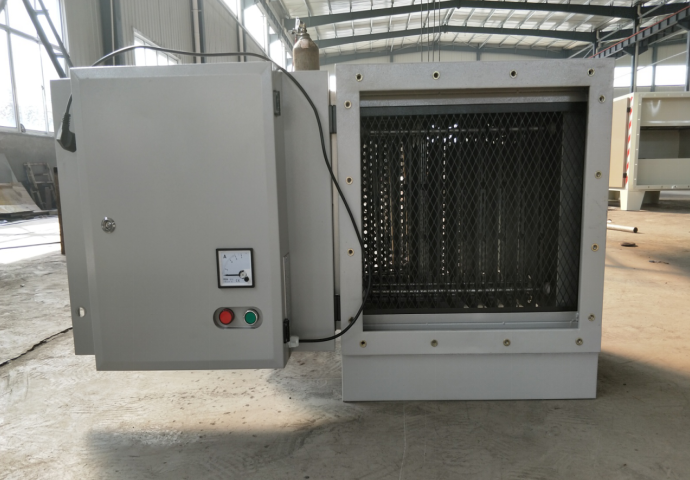 大颗粒油滴通过前挡板在自身重力作用下流入油槽排出。剩余的小粒径污染物进入离子高压静电区,通过强电作用使颗粒带上电荷,成为带电离子微粒,达到初步分离净化。